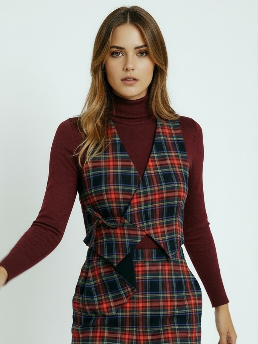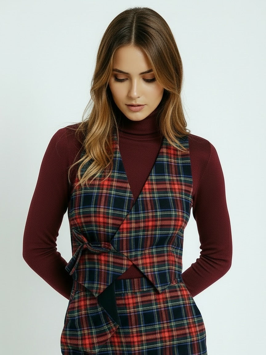 Chaleco de cuello escocés asimétrico reversible