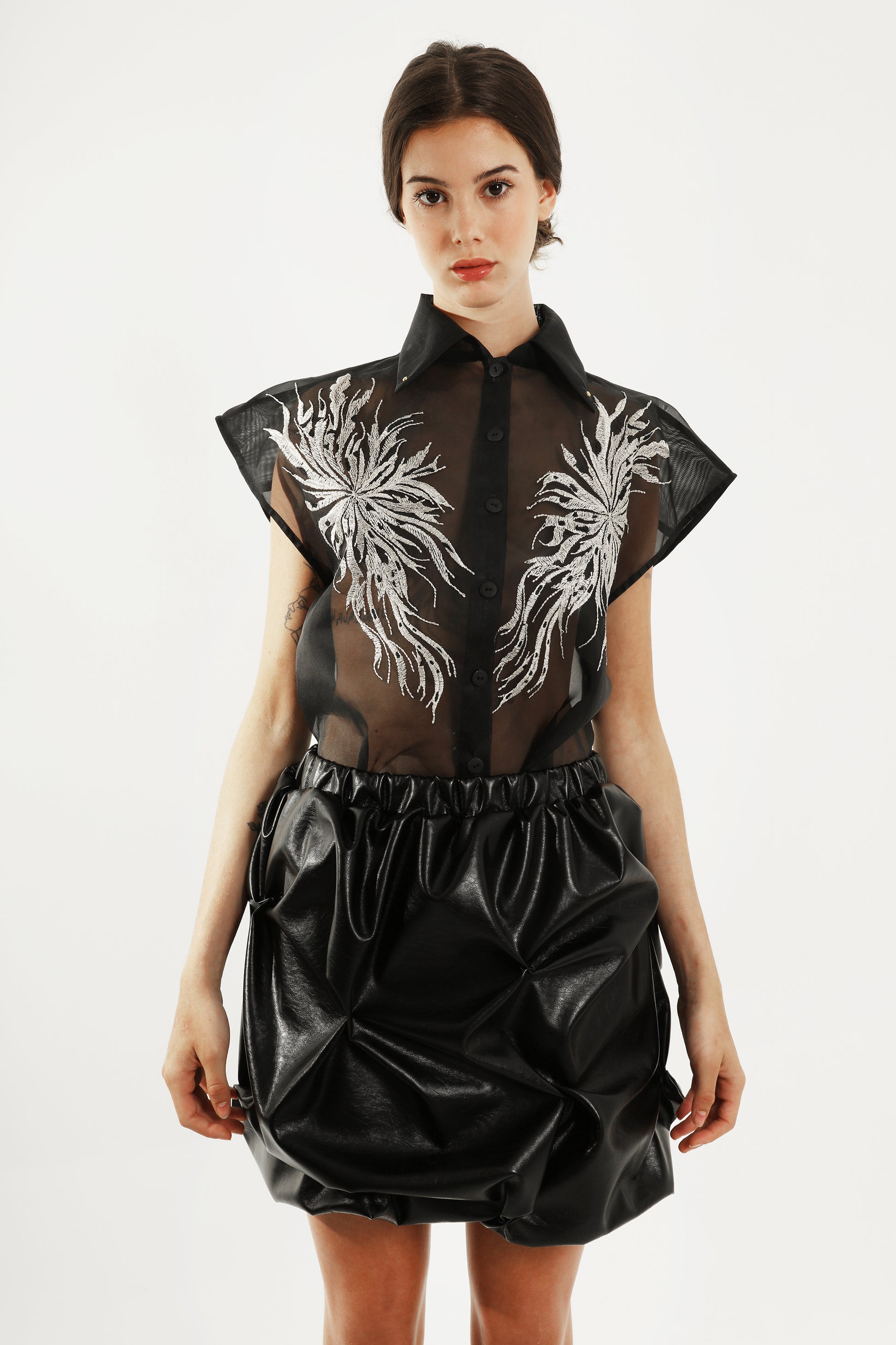 La minifalda negra de Anakon está confeccionada en piel sintética y tiene un diseño único. La cinturilla elástica garantiza un ajuste cómodo.