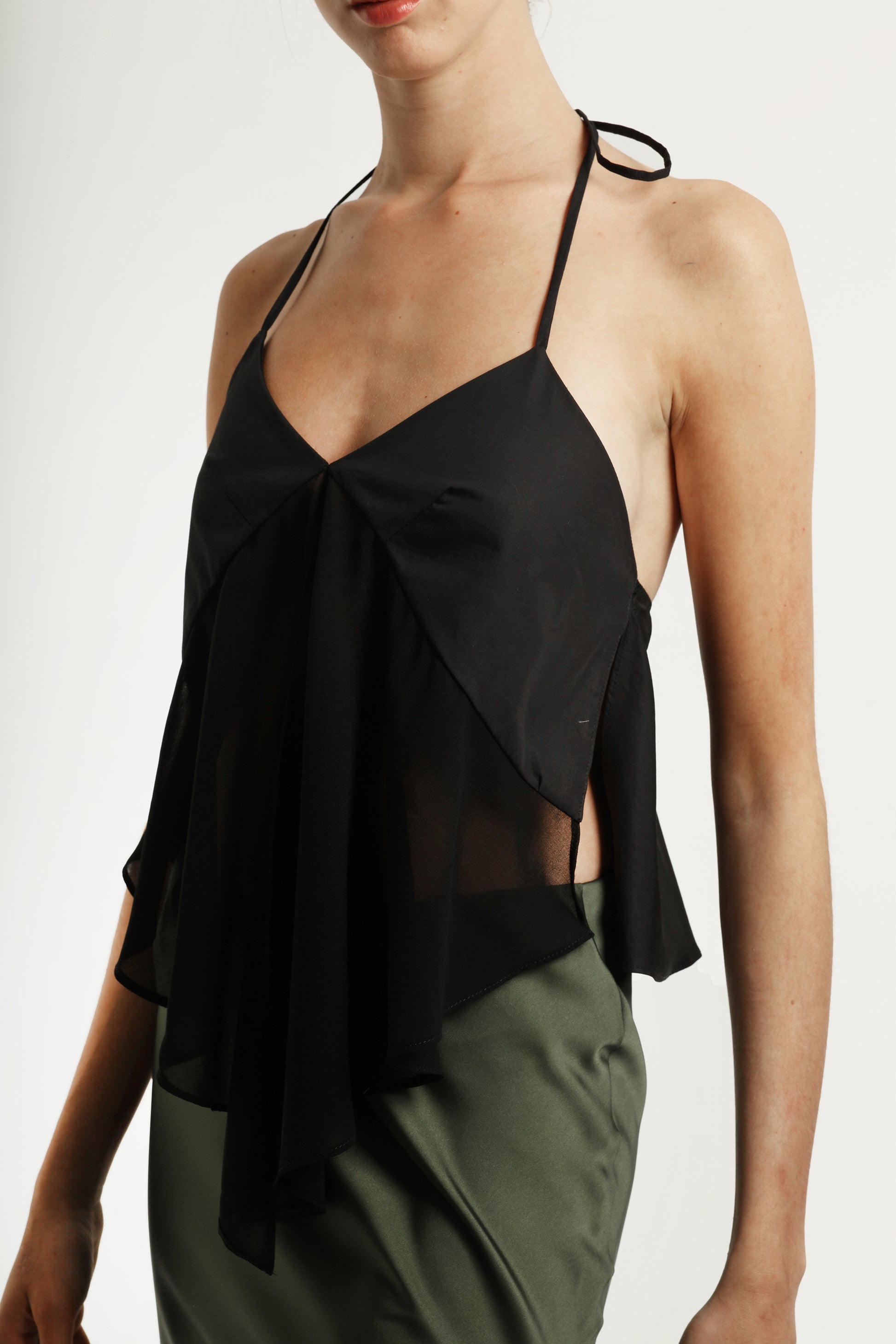 Confeccionado en algodón de la mejor calidad y seda ligera y transparente en color negro, este top de ANAKON es perfecto para el verano. Sus delicados tirantes le dan un toque de libertad y un ajuste cómodo.